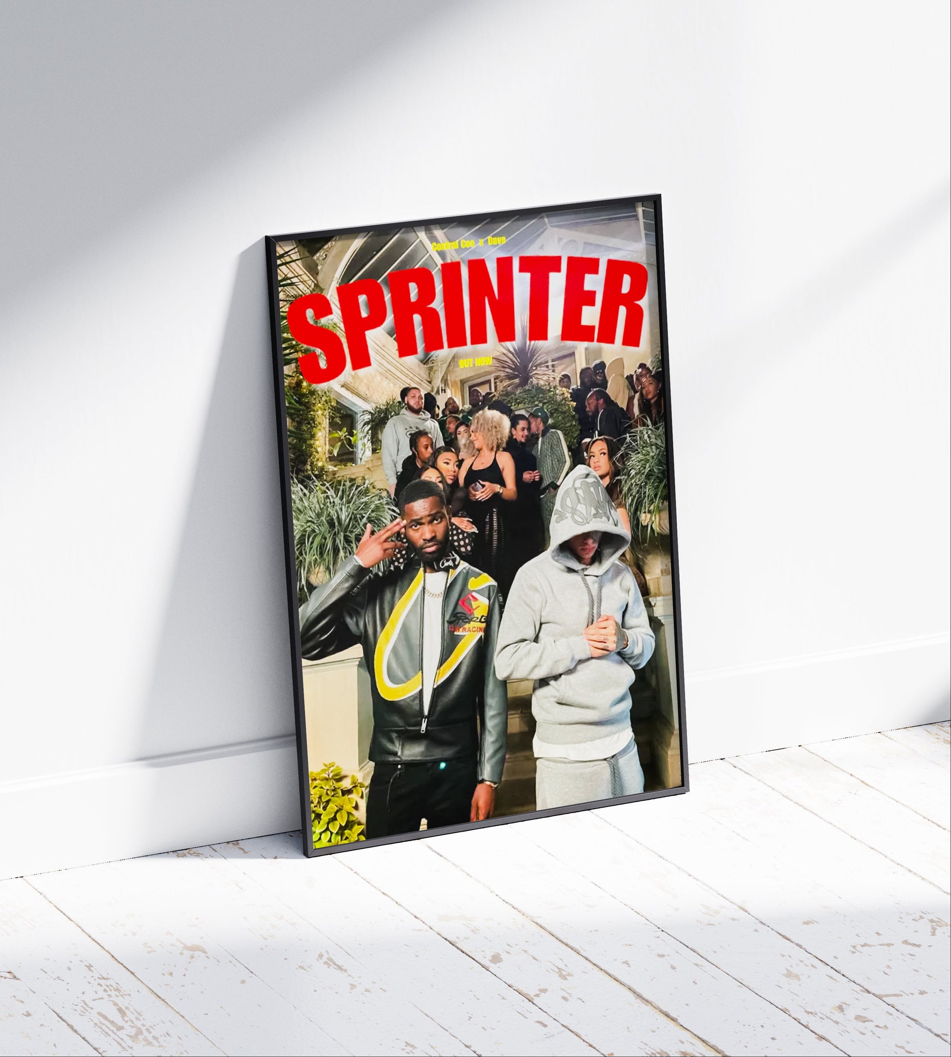Celebrate the dynamic collaboration between Central Cee and Santan Dave with the 'Sprinter' poster. This expertly designed piece captures the essence of their groundbreaking project, making it a must-have for fans and collectors. Perfect for showcasing your appreciation of contemporary UK rap, this poster adds a bold, artistic statement to any space.