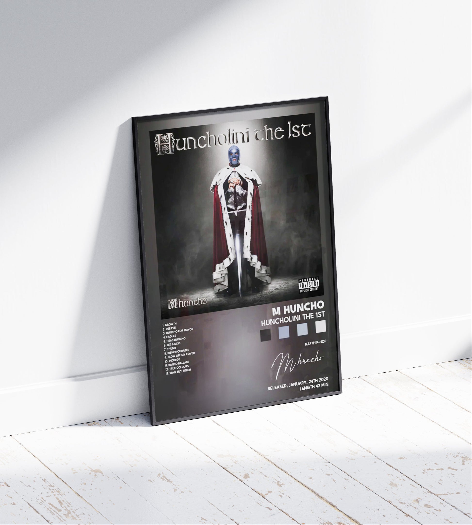Celebrate the innovative sound of M Huncho with the 'Huncholini The 1st' Album Poster. Designed for discerning fans, this high-quality print captures the essence of the album's artistic vision, making it a perfect addition to any contemporary music collection. Ideal for framing, it offers a stylish way to showcase your appreciation for one of UK rap’s most distinctive voices. Durable and visually striking, it preserves the album’s impact long after the final track ends.